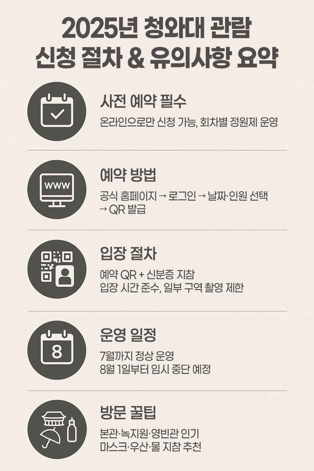 2025 청와대 관람 신청 절차 & 유의사항 요약 인포그래픽 이미지