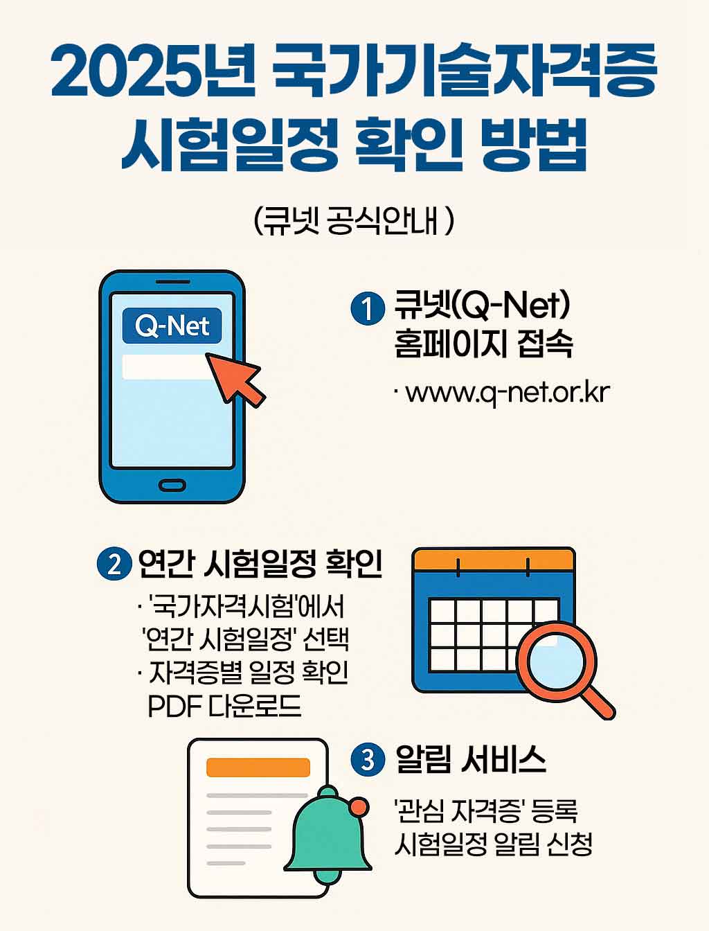 2025 큐넷 국가시술자격증 시험일정 확인 방법 요약 인포그래피기 이미지