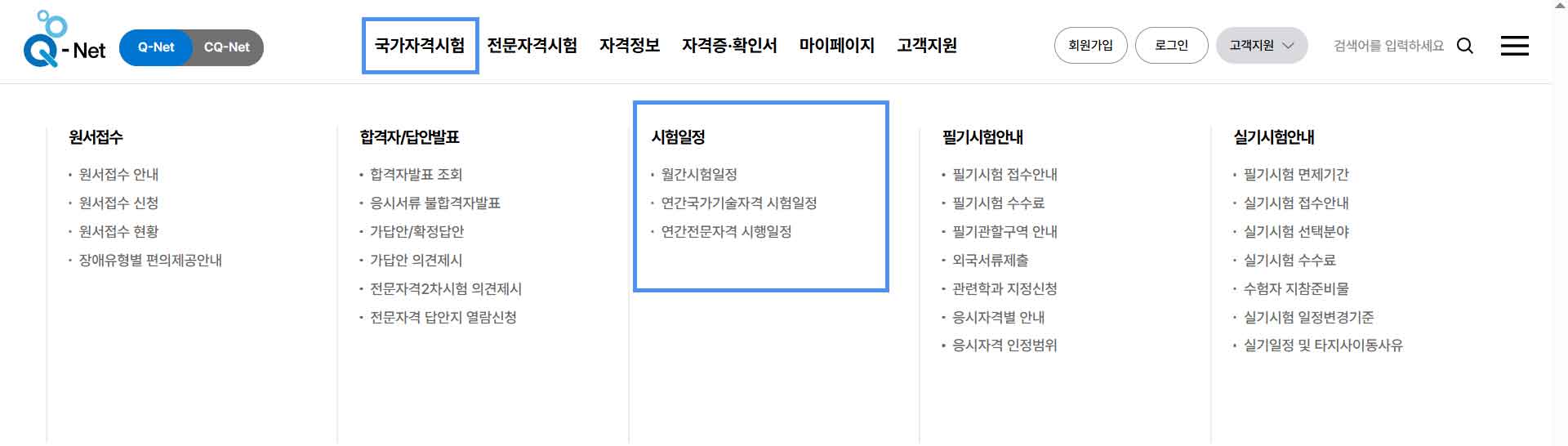 큐넷 홈페이지에서 연간 시험일정을 확인하려면, 다음과 같이 진행하시면 됩니다: