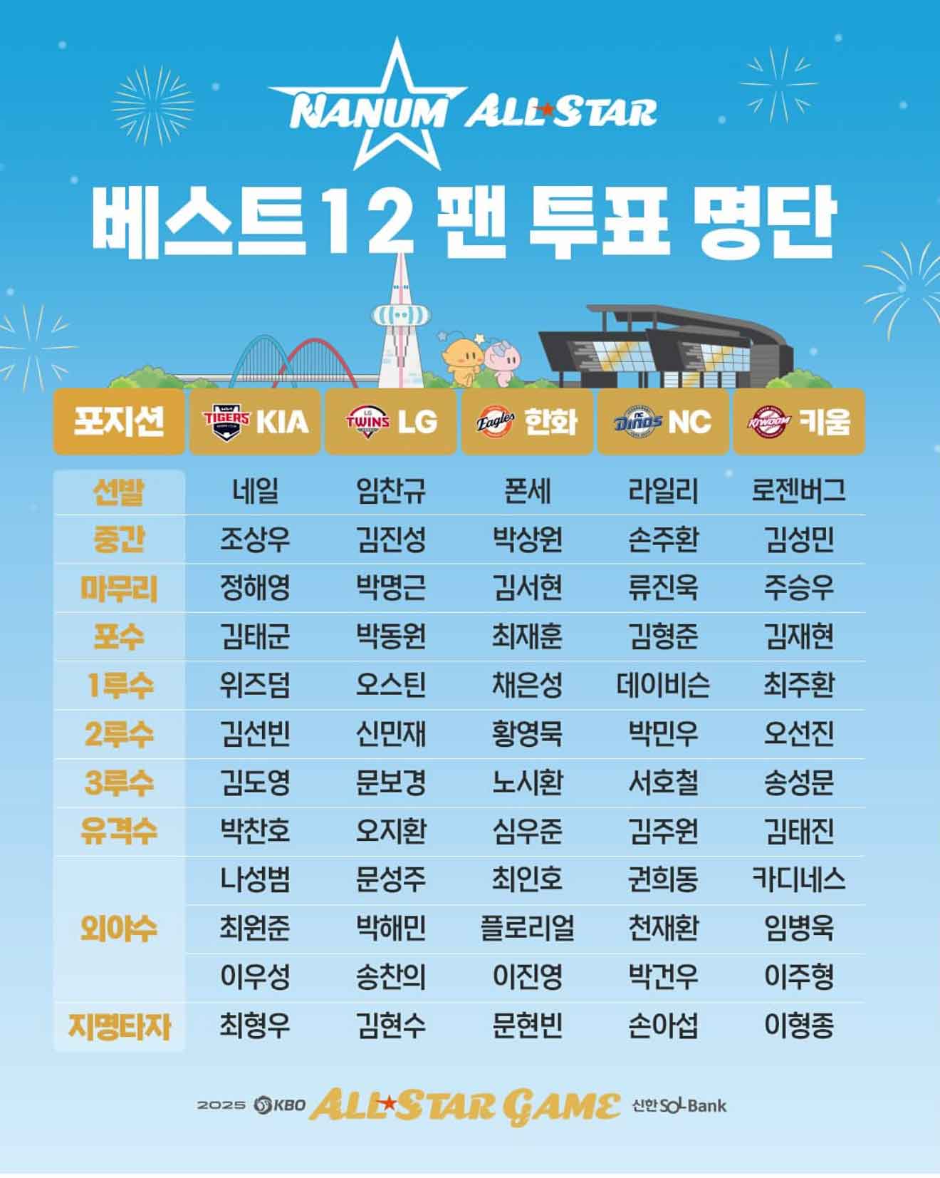 나눔 팀 올스타 베스트12 팬투표 후보 명단 (출처:KBO 공식 인스타그램 @kbo.official)