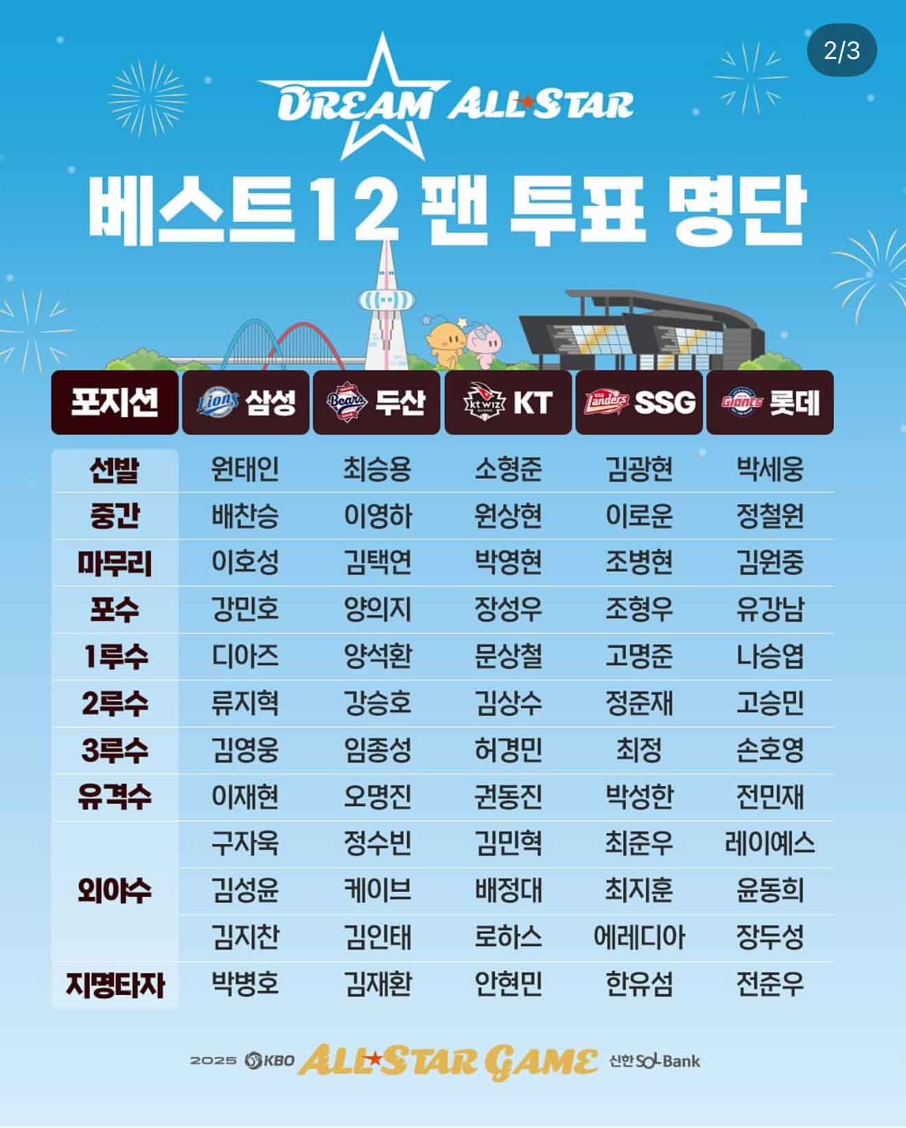 드림팀 올스타 베스트12 팬투표 후보 명단 (출처:KBO 공식 인스타그램 @kbo.official)