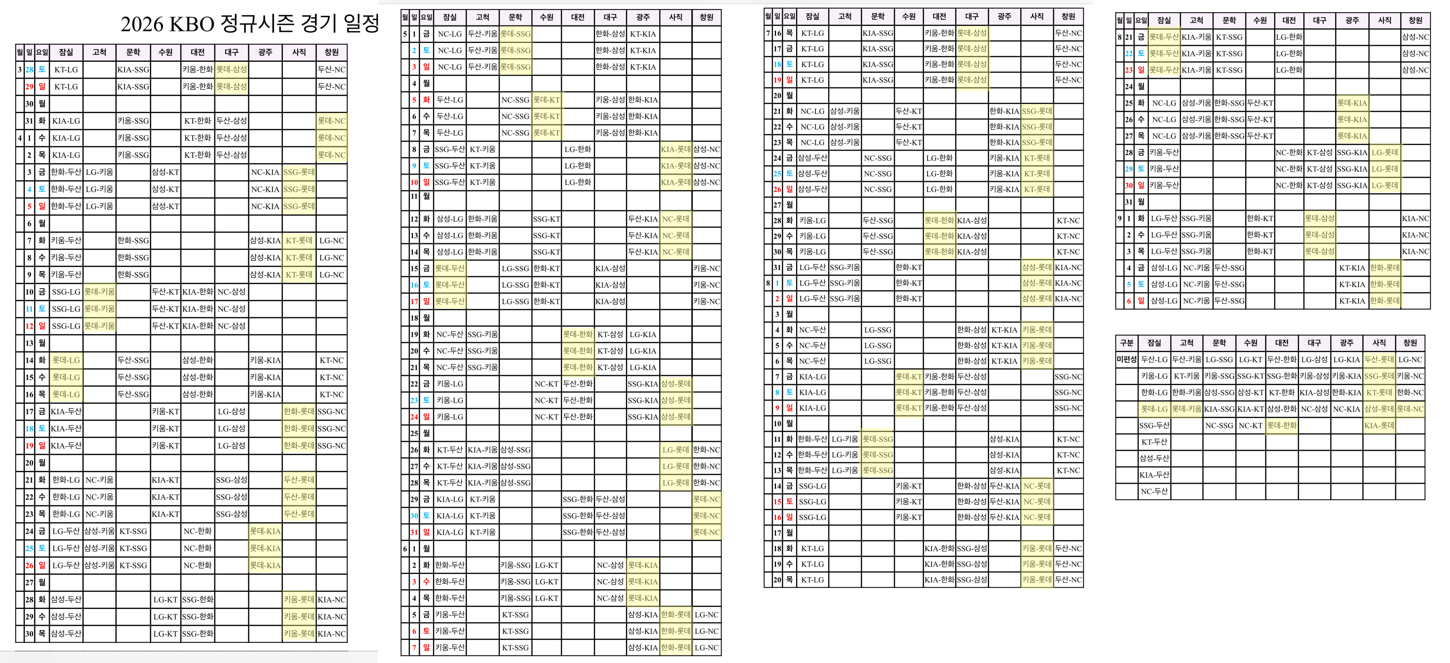 경기 일정 변경, 우천 취소, 추가 편성 여부는 반드시 KBO 공식 홈페이지에서 확인하는 것이 가장 정확합니다.