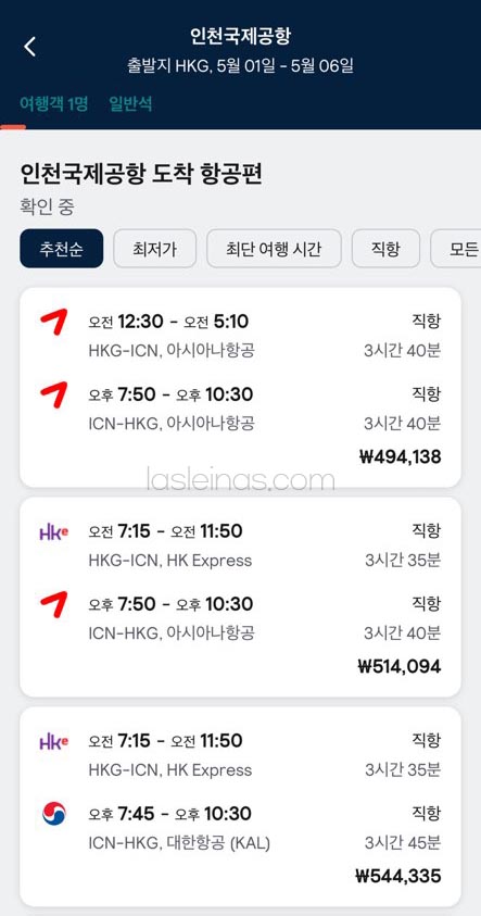하지만 스카이 스캐너를 통해 홍콩 왕복 항공권 최저가를 봤을 때 제가 검색했을 때 기준으로