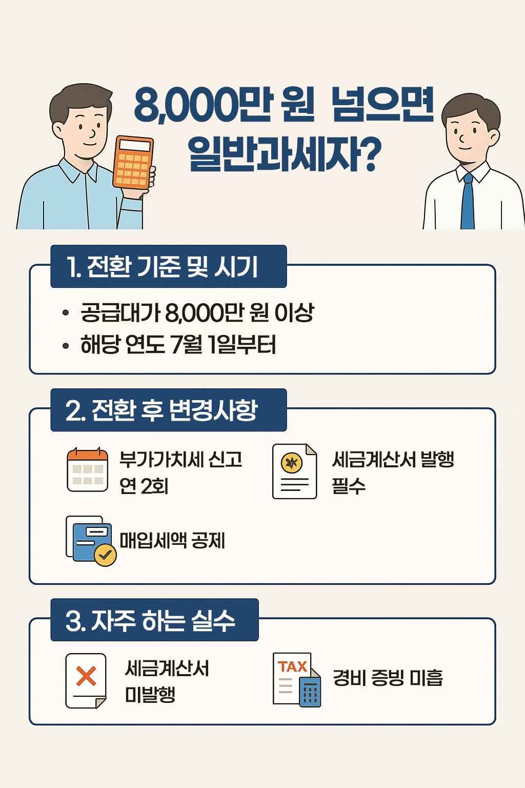 간이과세자 → 일반과세자 전환 기준과 실수 피하는 법 요약 인포그래픽