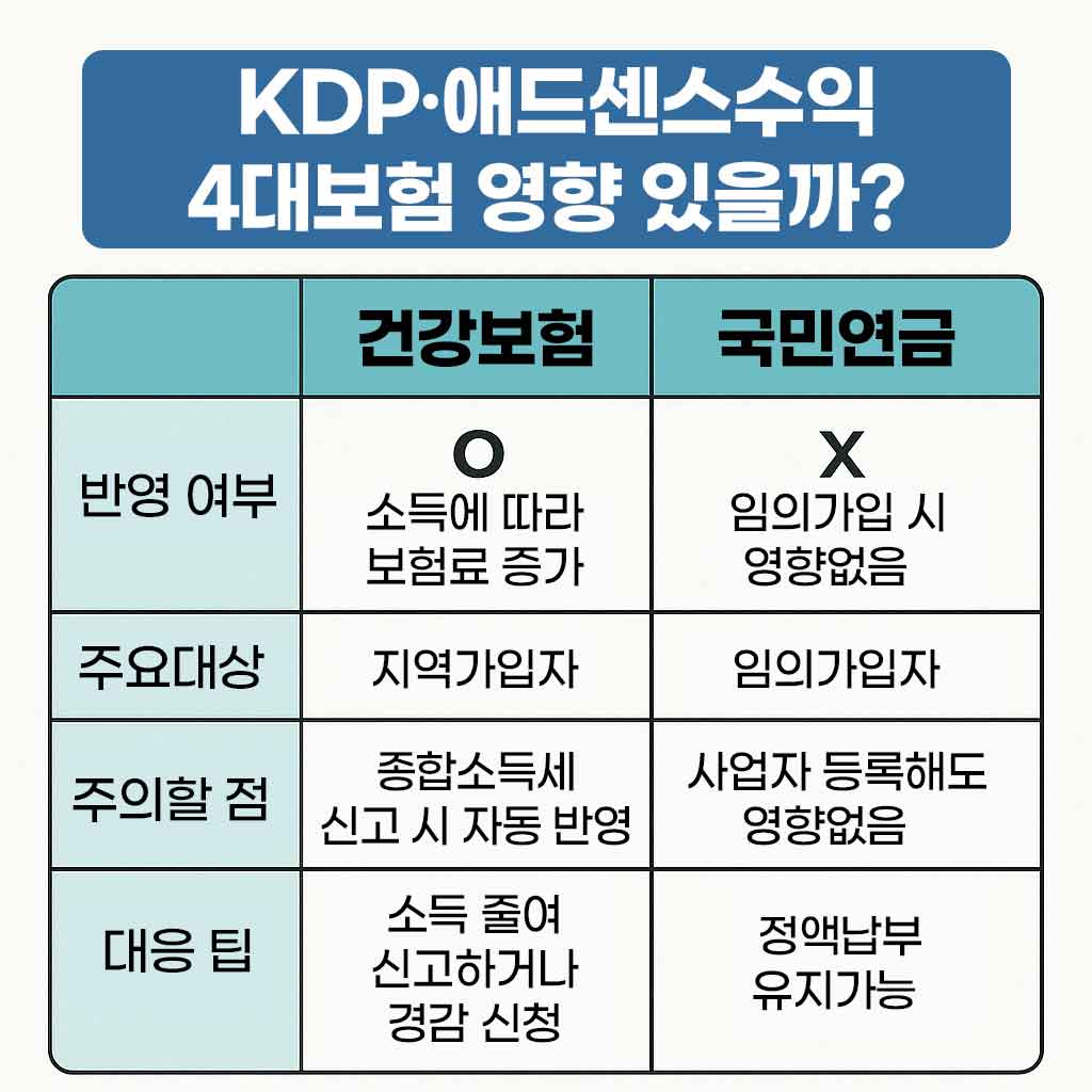 KDP 및 애드센스 수익 건강보험 국민연금 영향 여부 요약