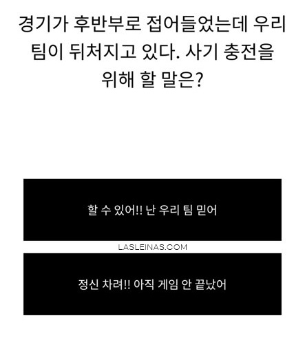 경기 후반부로 접어들었는데 우리 팀이 뒤처지고 있다면 사기 충전을 위해 할 수 있다고 격려해 줄 것 같아요.