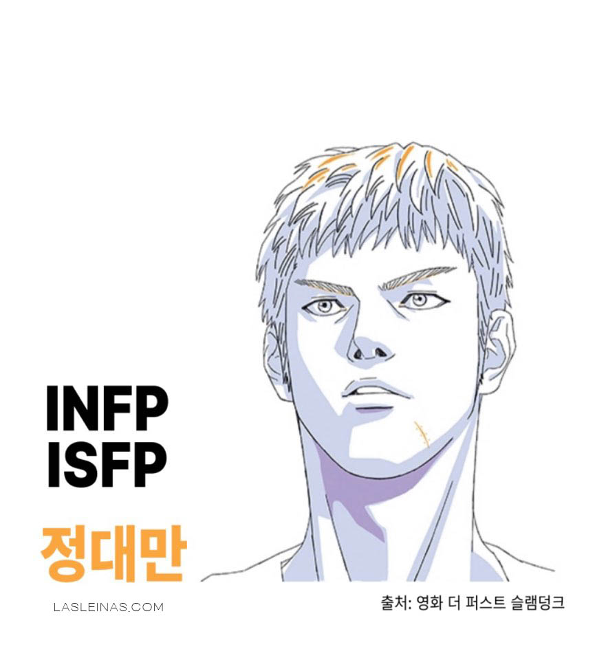 이렇게 9문항을 풀어보았는데요. 저는 원래 MBTI유형이 INFP인데요. 정말로 INFP /ISFP 유형인 정대만이 나왔어요. 그렇다면 다른 유형의 결과도 궁금하시지 않나요? MBTI 별 슬램덩크 캐릭터를 알아보았습니다.