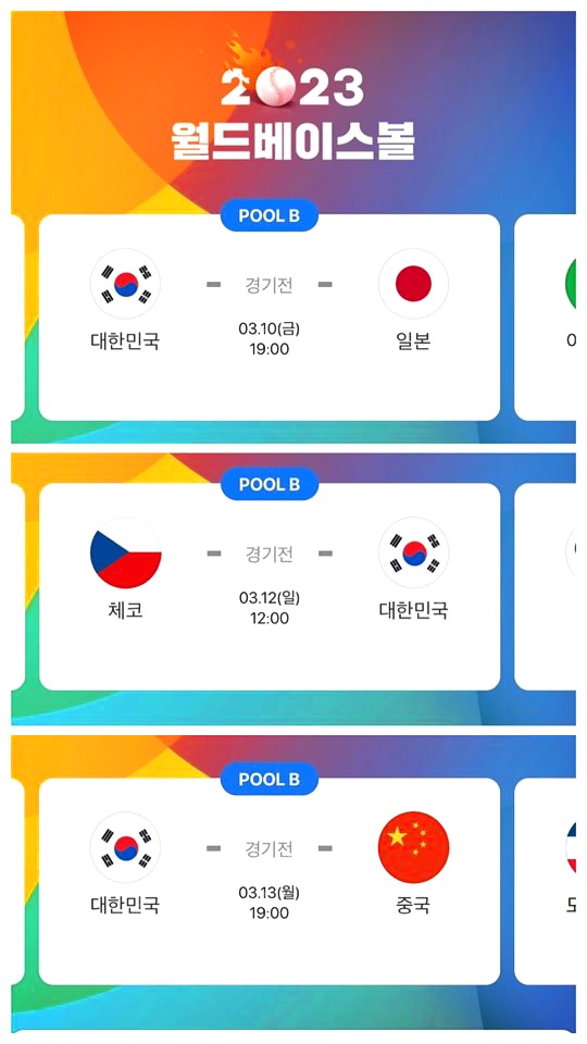 2023 WBC 월드베이스볼클래식 대한민국 경기 일정